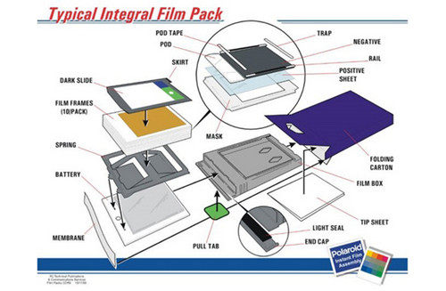 看不懂吧。我懂一点,大概意思说就是感光层有很多层,每一层决定一种颜色,光线照在底片上感光,然后底片被推出来的时候药液包被滚轴挤破,覆盖在感光层上,药水相互反应然后颜色逐渐浮上来,完成显影定影这个过程。所以,白色火焰啊应该是TIP新版相纸的药膜存在某种bug。
