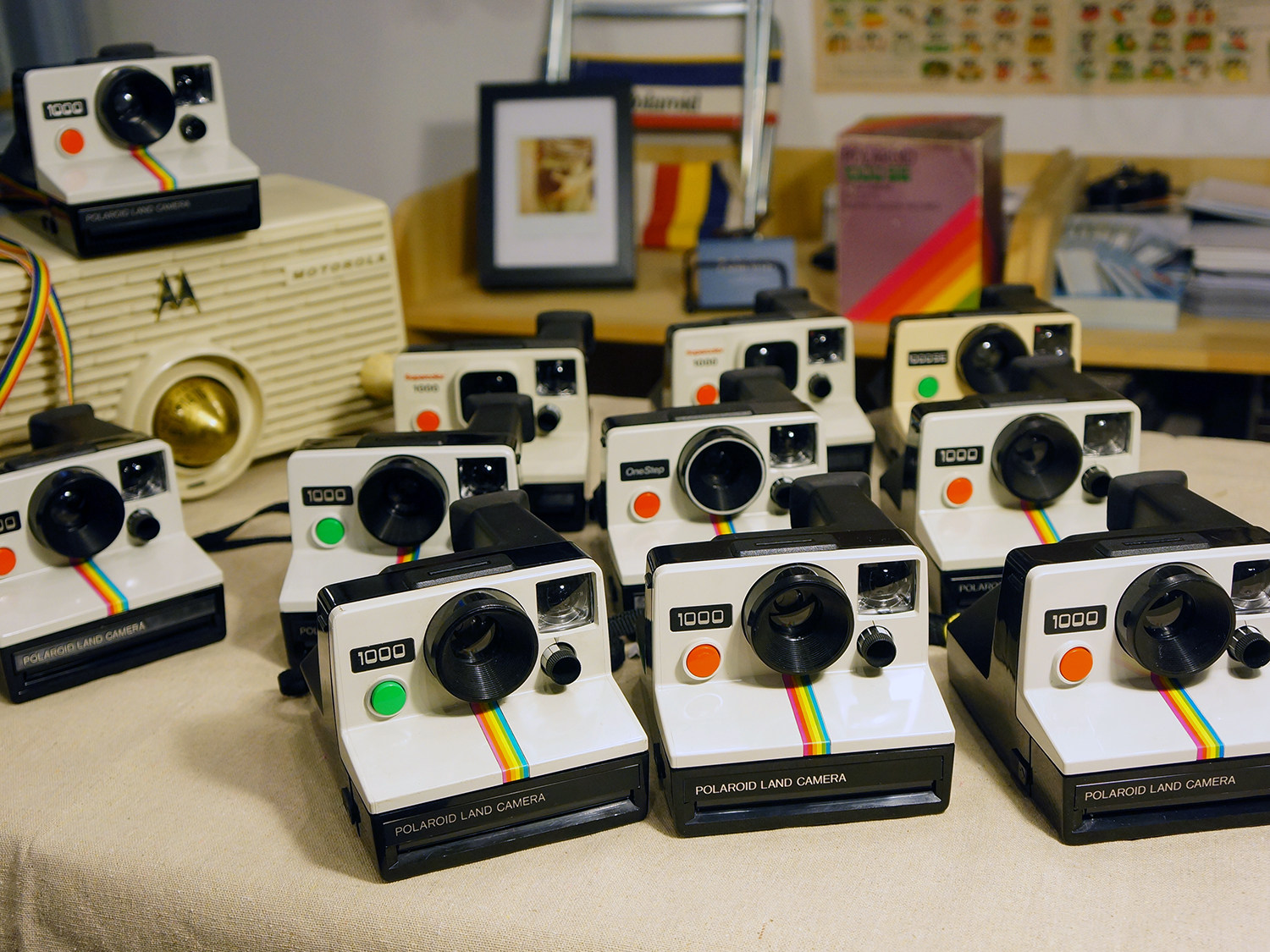SX-70系固定机身相机(相对于折叠机的概念)。有黑彩虹和白彩虹之分。